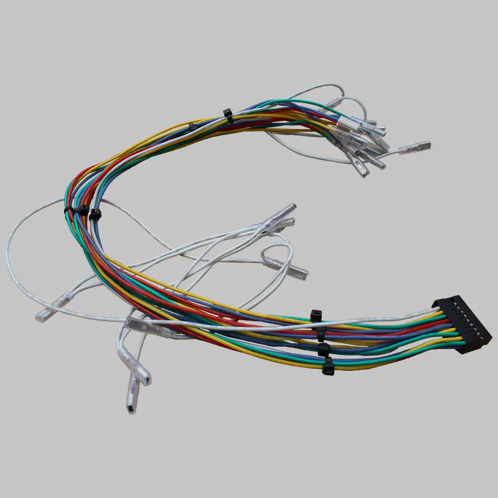 This is the main cable harness that connects both joystick and buttons. It comes with a 20-pin connector on one end that connects to the 20-pin connector on the Advanced Breakout Board and on the other end of the harness it has 2.8mm quick disconnects with sleeves for all the buttons and a 5-pin connector for the joystick.